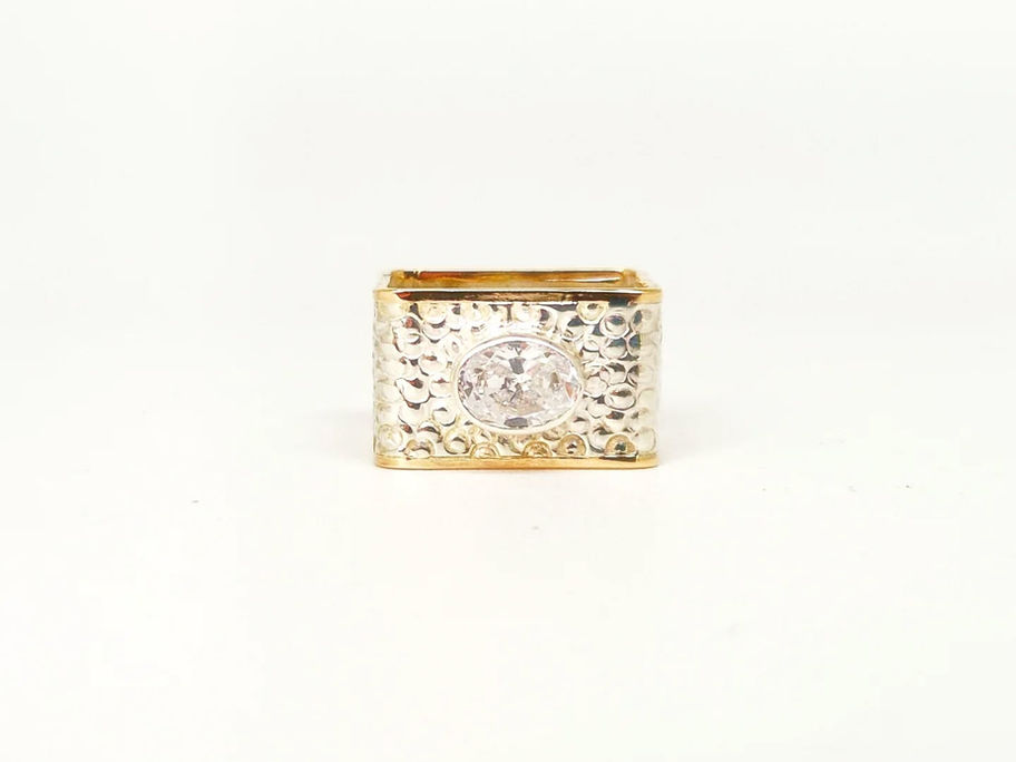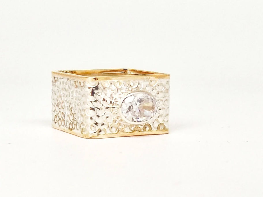 Carré de Lumière – Bague Argent & Goldfilled Or 14k, Zircon Ovale